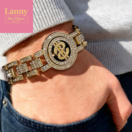 Men'S Hip-Hop Swag Rotating Dollar Bracelet with Rhinestones Gold & Silver Hip-Hop Accessories for Bold Stylish Outfits
