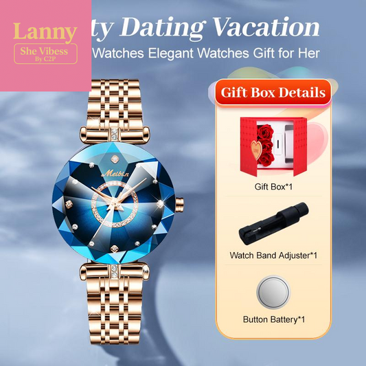 Luxury Sapphire-Toned Quartz Watch - Wealth round Dial Analog Watch | Stainless Steel Strap & Butterfly Clasp, Waterproof, Swiss-Grade Craft | Fuses European Elegance, Fashion & Practicality | Comes with Gift Box Set