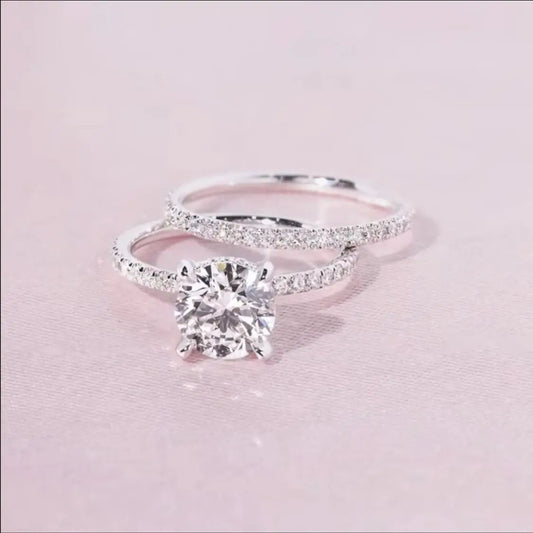 Huitan 2Pcs/Set Women Ring Fresh Style Silver Color Accessories for Wedding Anniversary Aesthetic Jewelry Gift Inlaid Shiny CZ