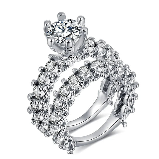 Elegant Zircon Ring Jewelry Silver Color Engagement Wedding Ring Set for Women 2019 Fashion Zircon Crystal Jewelry Gift