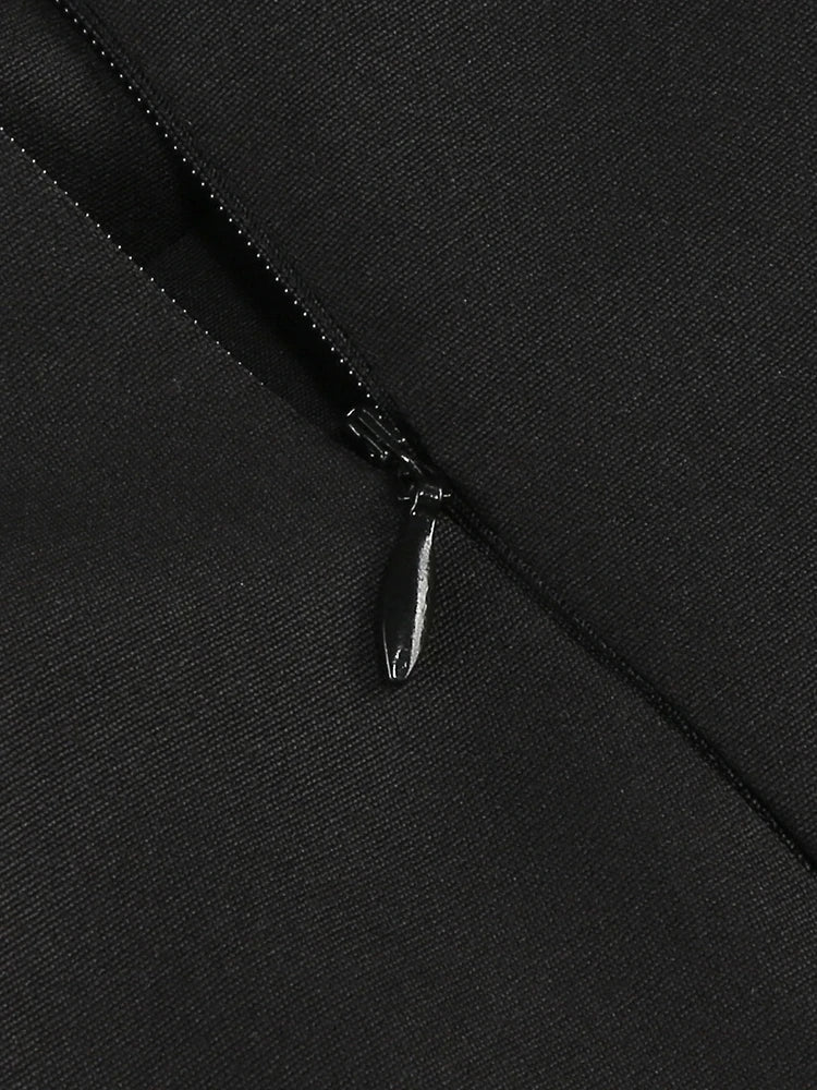 Vestido mini de lujo con cristales y mangas largas, sexy, con cintura brillante y diamantes, corte A, para mujer, color negro, para fiestas de celebridades y noche.