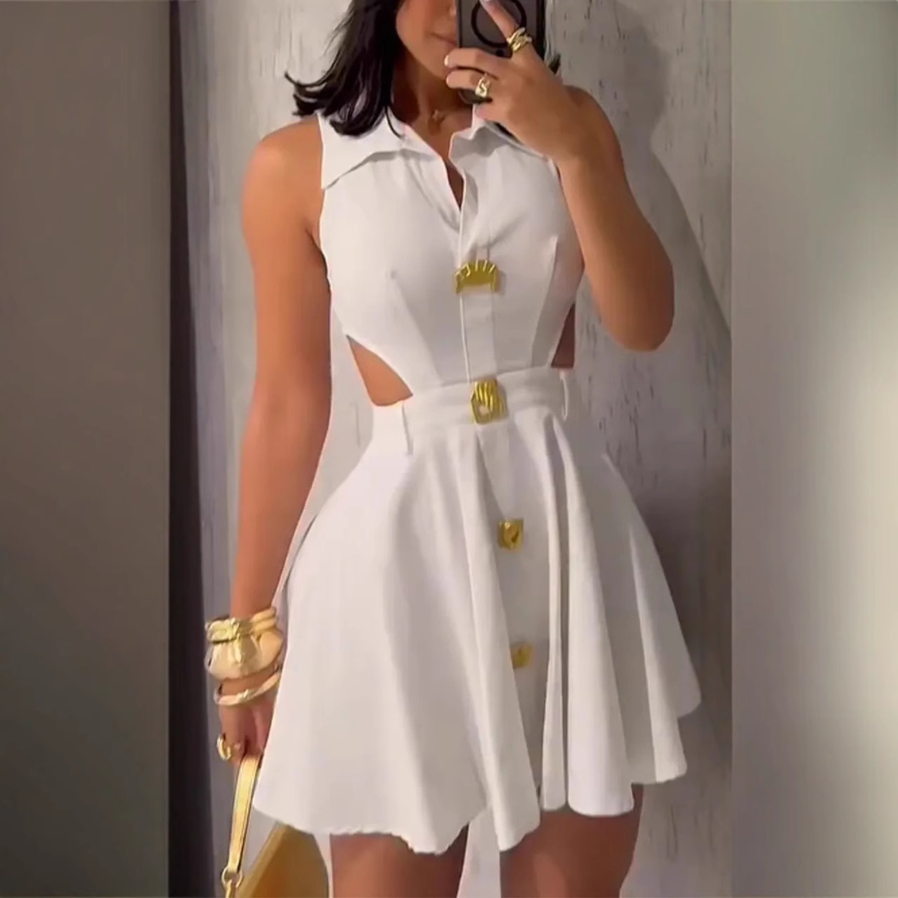 Womens Fashion, Elegant Sleeveless A-line Skirt Dress