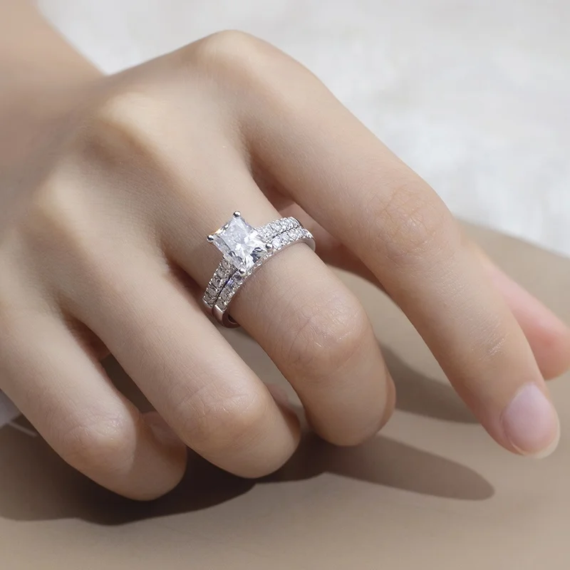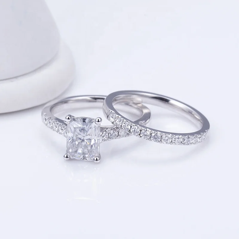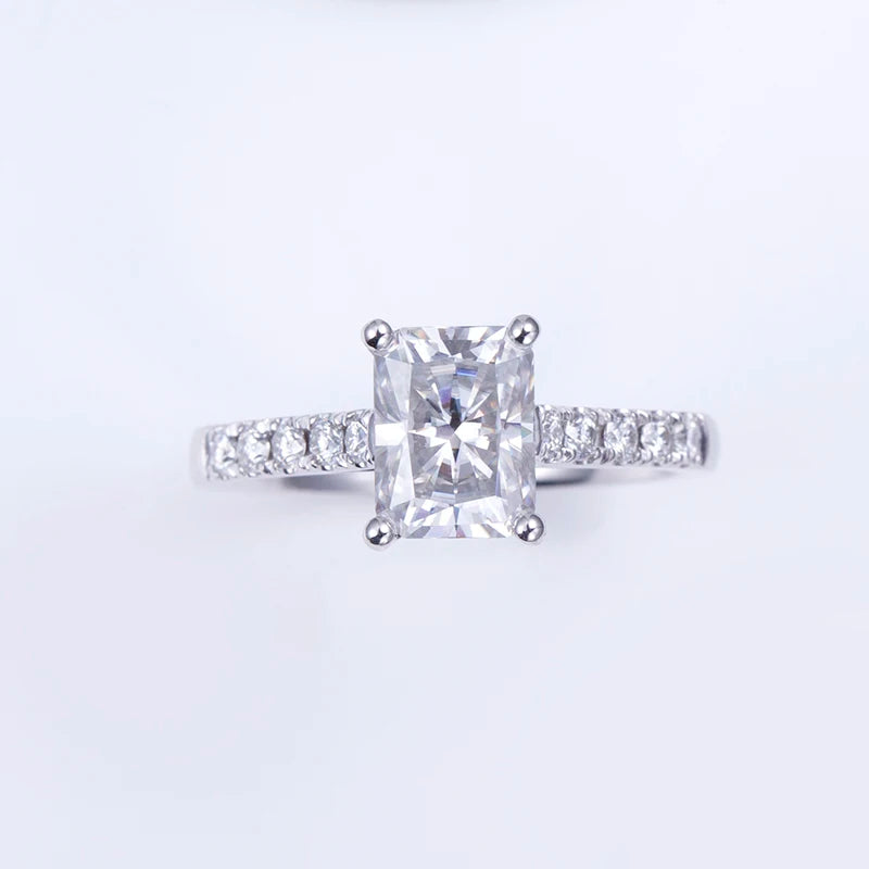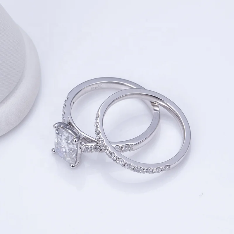 PT950 Perhiasan Pernikahan Pertunangan 2CT Bentuk Radiant Moissanite GRA Gaya Klasik Cincin Kustom