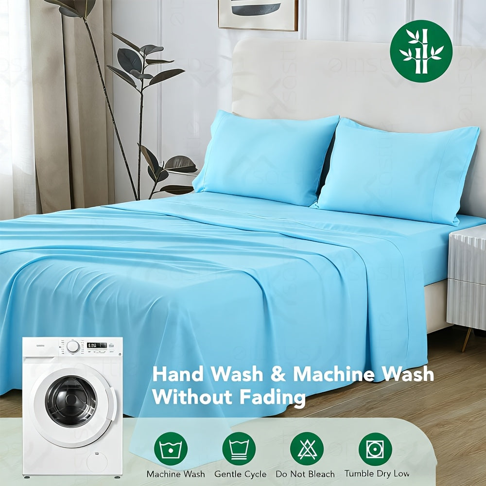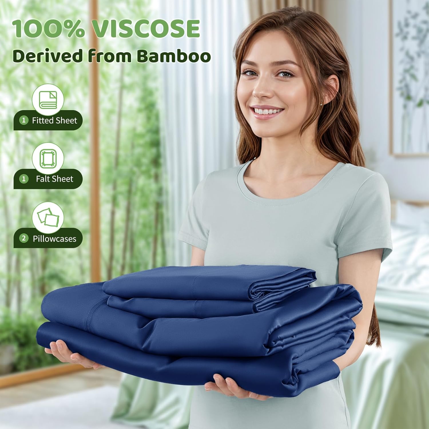 4 Peices Bamboo Bed Sheet Set - 100% Bamboo Blend - Ultra Soft & Breathable Bed Sheets - Deep Pocket Up to 16" Hotel Y Bedding Set - Perfect for Hot Sleepers - Great Christmas Gifts Bedding Sheets Set Bamboo Sheets Sets King