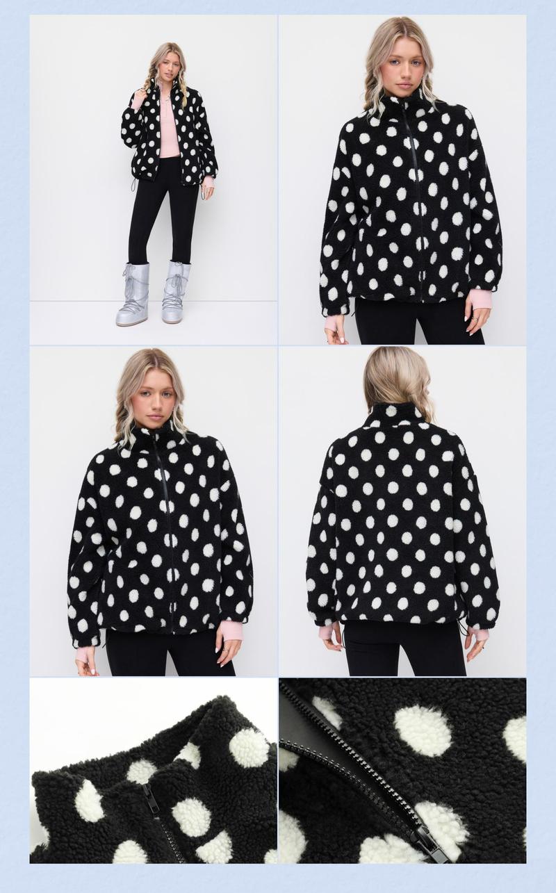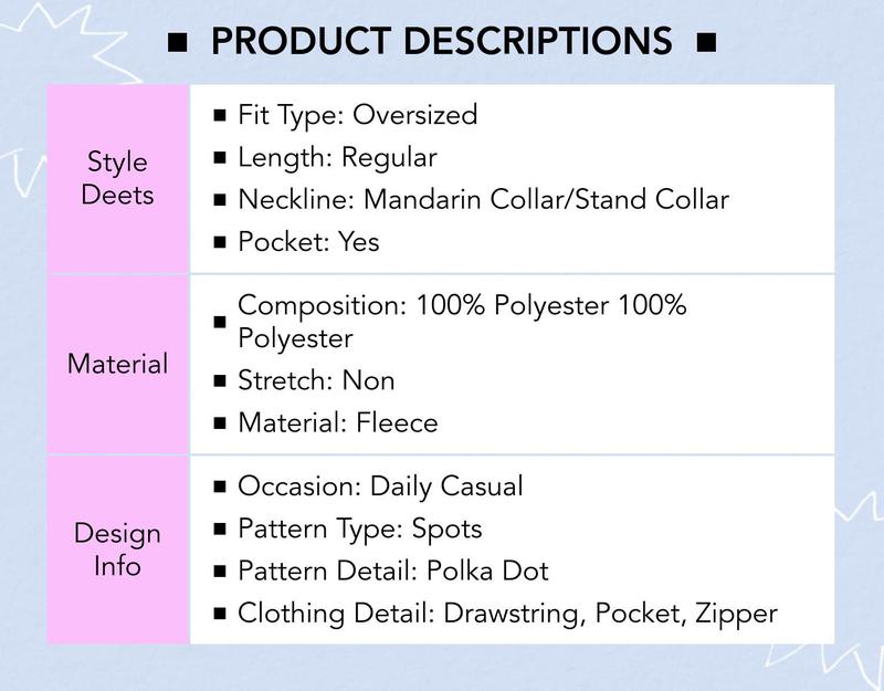 Cider Fleece Polka Dot Drawstring Stand Collar Oversized Jacket