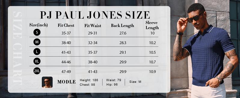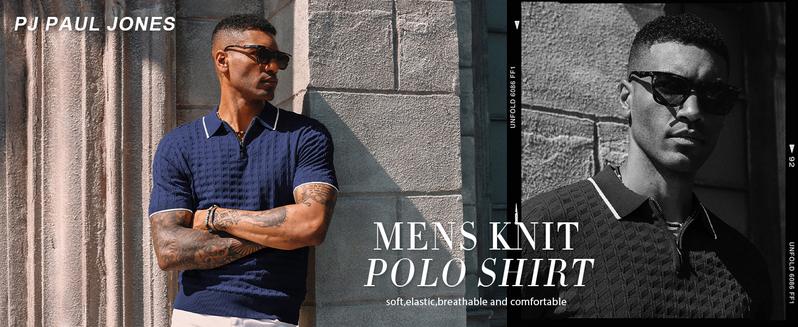 - Mens Quarter Zip Polo Shirt: PJ PAUL JONES Men's polo shirt designed with classic 1/4 zip, textured pattern, turn down collar, banded cuffs and hemline, white stripes on the collar and cuffs highlight fashion,classic with novel.