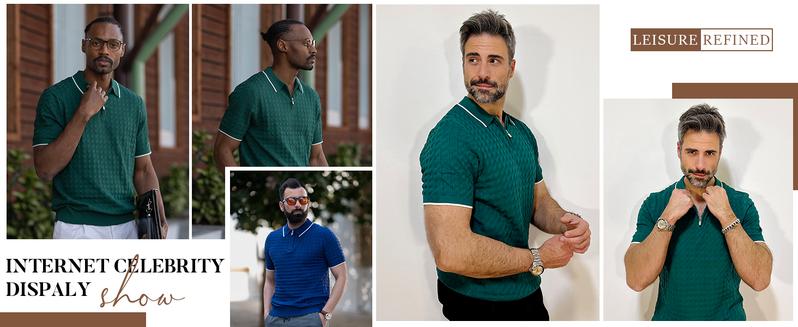 - Mens Knit Polo Shirts: This men's quarter zip polo shirt is made of ultra soft and comfortable knitted fabric, the material is well elastic, soft, skin-friendly, breathable and wrinkle resistant, comfortable to wear.
