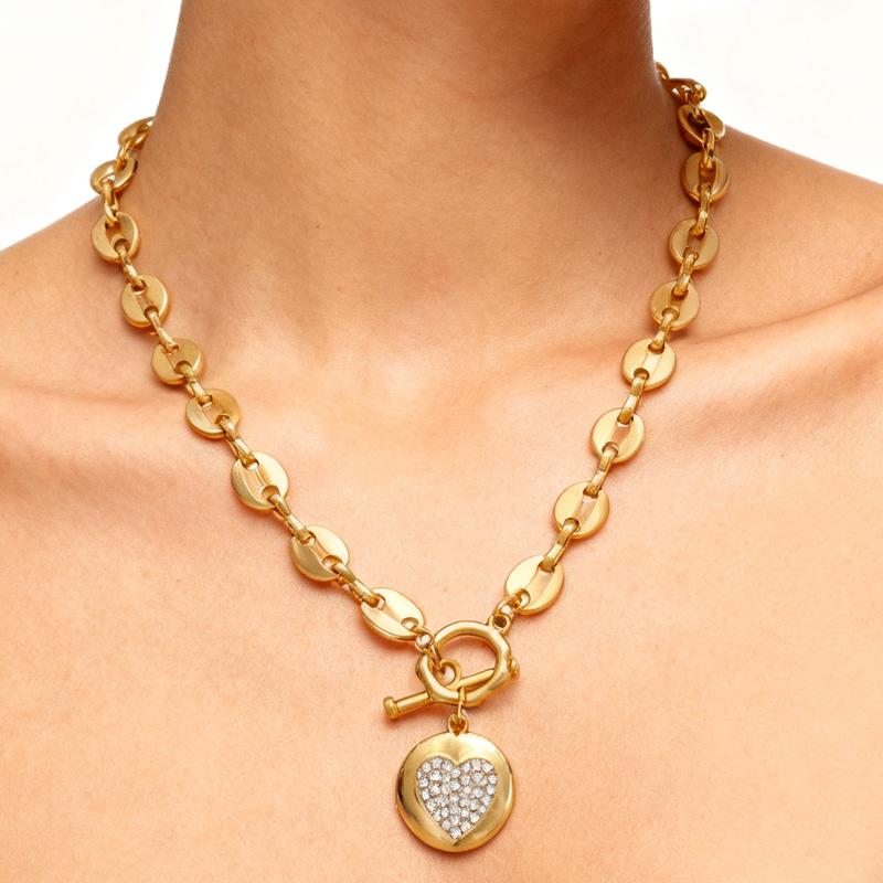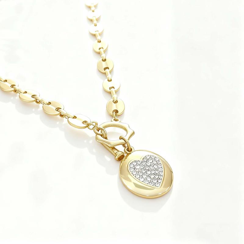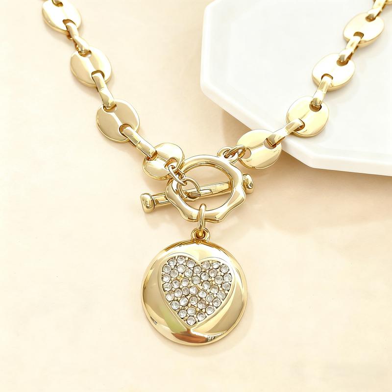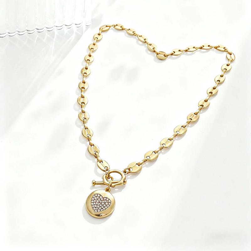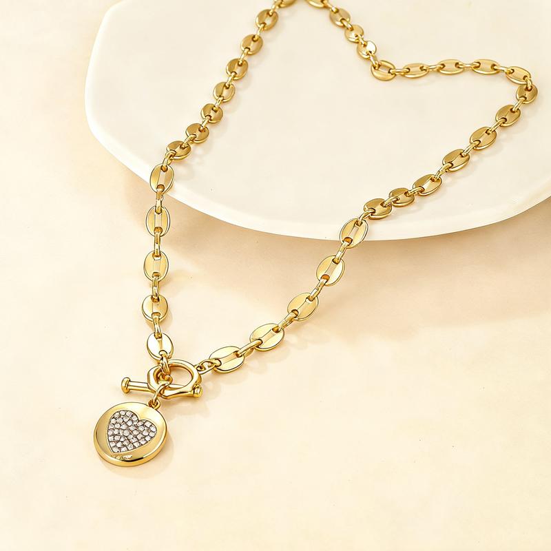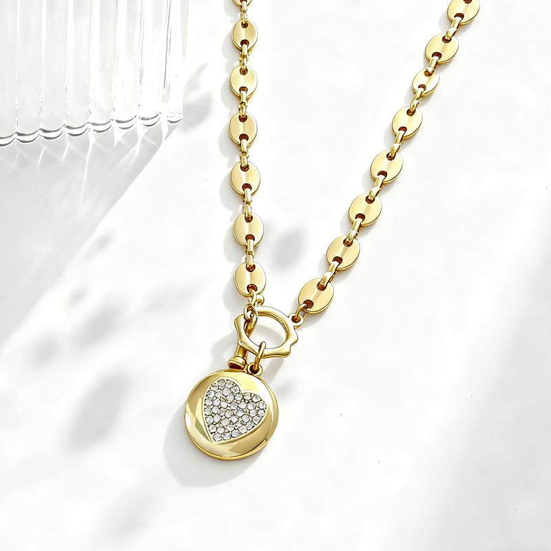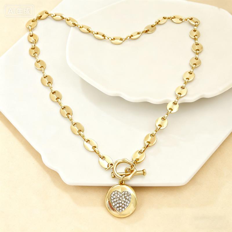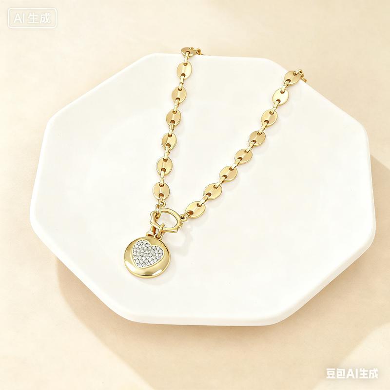 Retro Light Luxury Temperament OT Buckle Women'S Necklace, Heart-Shaped Fashion Design Clavicle Chain