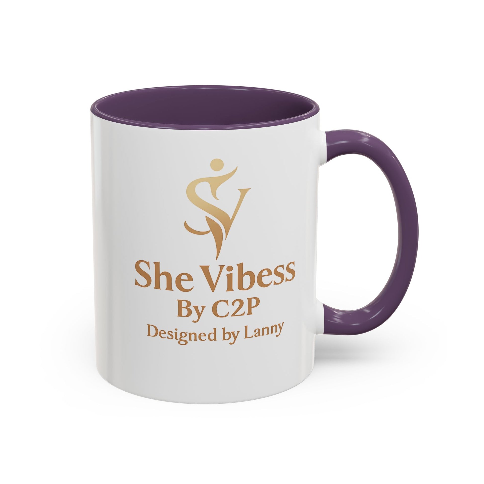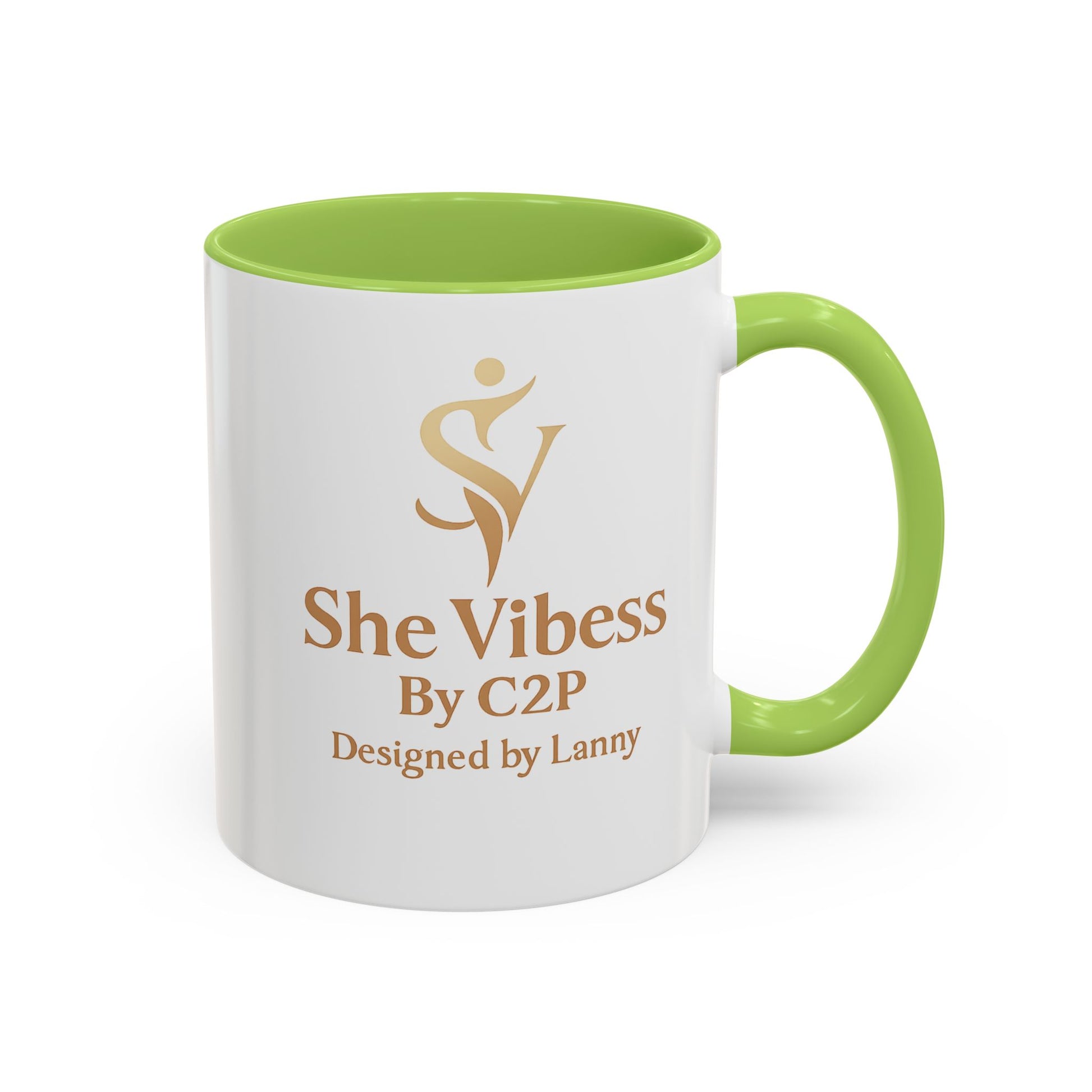 Designed for warm mornings and focused afternoons, this ceramic accent mug reflects the calm confidence of the She Vibess™ lifestyle. The glossy white exterior is paired with a contrasting interior and handle, framing a soft gold-toned She Vibess™ logo with a refined, boutique feel. A subtle signature line beneath the logo reads Designed by Lanny, grounding the piece in intention and authorship.
