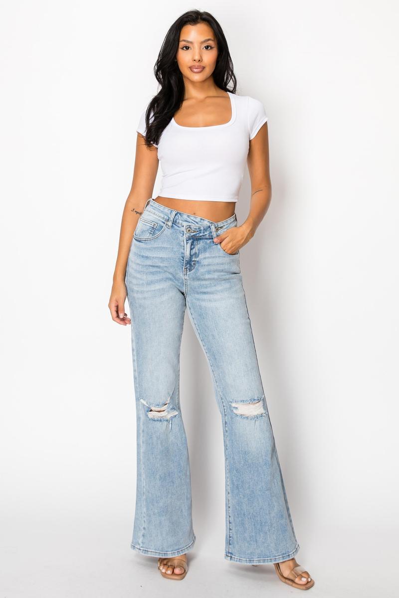 Valerie CANANA Super Stretchy High Rise Crossover Tapered Ripped Bootcut Jeans for Women SH25F15 Womenswear Comfortable Denim Bell Bottom Outfit Tummy Control Flare Leg Regular Size plus Size #Tiktokshopholidayhaul