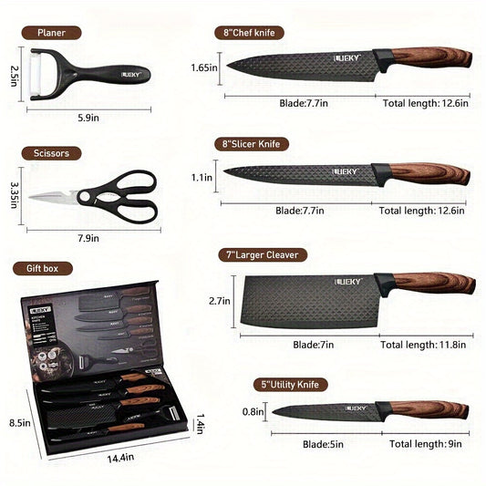 Professional 6 Kitchen Knife Set, Chef's Knife, Slicing Knife, Scraper And Scissors, High Carbon Stainless Steel Super Sharp, With Anti-stick Ergonomic Wooden Handle, Chef's Knife Set, Suitable For Family Travel, Gift Box Set